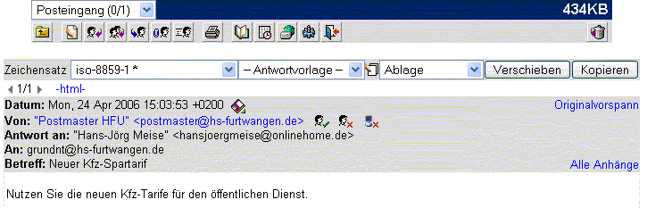 Die Messagetoolbar ist zur Bearbeitung der angezeigten Nachricht.