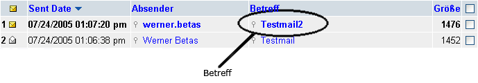 | Um eine Nachricht zu lesen, klicken Sie auf den Betreff der Nachricht.