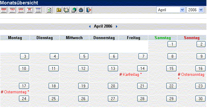 Erklärung der Kalendertoolbar wählen Sie den Tutorialeintrag: Die Kalendertoolbar