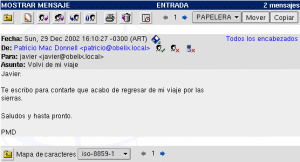 El encabezado del mensaje contiene la misma información mostrada en la