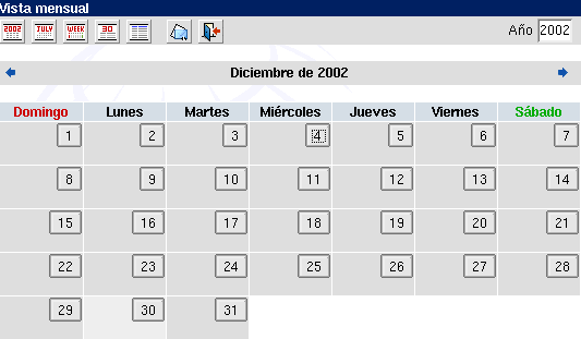 Para ver un día específico, puede presionar el botón con el número correspondiente. Esto lo llevará a los horarios y eventos de ese día. Notará además que existe una barra de herramientas específica para el calendario. Vea