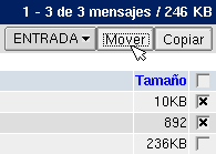 Para Copiar o Mover mensajes, selección el o los mensajes sobre los que desee realizar la acción (usando los cuadros de selección a la derecha de cada mensaje), luego seleccione la ubicación hacia donde va a Copiar o Mover y presione el botón "Mover" o "Copiar" (dependiendo de lo que desee hacer).
