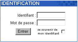 | Saisissez votre Identifiant (ou nom d'utilisateur) dans le champ texte à coté de Identifiant :, et votre mot de passe dans le champ texte à coté de Mot de passe :.