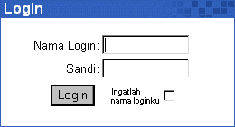 | Ketik Nama Login (atau ID) anda pada kolom isian di sebelah Nama Login:, dan Sandi anda pada kolom isian di sebelah Sandi:.