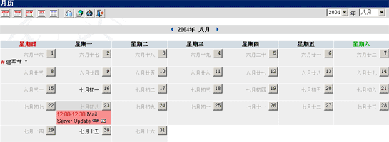 要查看某一天,你可以点选其数字按钮。目前会显示当日的项目清单及其时间。你会发现有一些特殊的工具条是专门给日程表使用的。查看