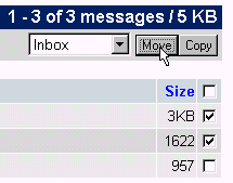 在這個案例,前面兩封郵件將會被搬移到 Inbox 信件匣去。功能表單可以讓你選擇目前的任何資料夾,或者任何你自己已經建立好的資料夾(請看 資料夾管理 來獲到更多在這個主題上的相關資料)