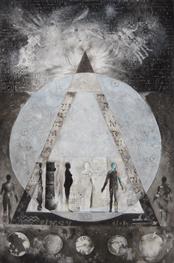 36” x 48”. Graphite, conté, gouache, charcoal, acrylics, watercolour pencil, and India ink on Rives BFK paper collaged on birch panel. 2016. $1850.00