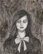 16"x20" Graphite on rice paper, India ink monoprints and acrylics on canva. 2005.