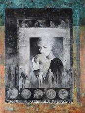30” x 40”. Graphite, conte, pastels, india ink, acrylics, and collage on canvas. 2013. $1350.00, individually