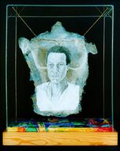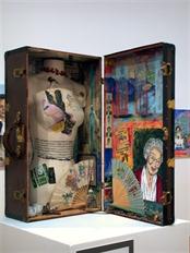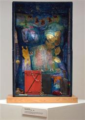 23"X17"X7" Mixed media assemblage (sculpture) base 28"x21". 2000.