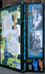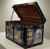 Circa 1945 Trunk , Newly installed cedar lining, mix media collage. 2001.