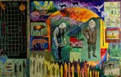 95"x54" Acrylic, mixed media and objects on canvas. 1999.