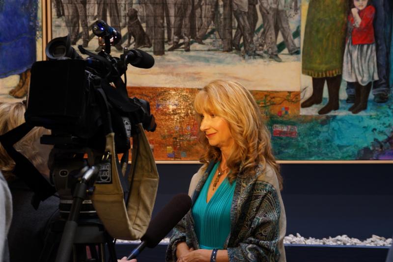 84"x72". India ink monotypes, graphite, frottage, copies of archival diaries, and acrylics collaged on canvas. 2011. Photo by Book Buksa. On permanent loan to the College of New Caledonia.