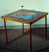 29"x29"x29" Mixed media assemblage on vintage card table (top view). 1992.